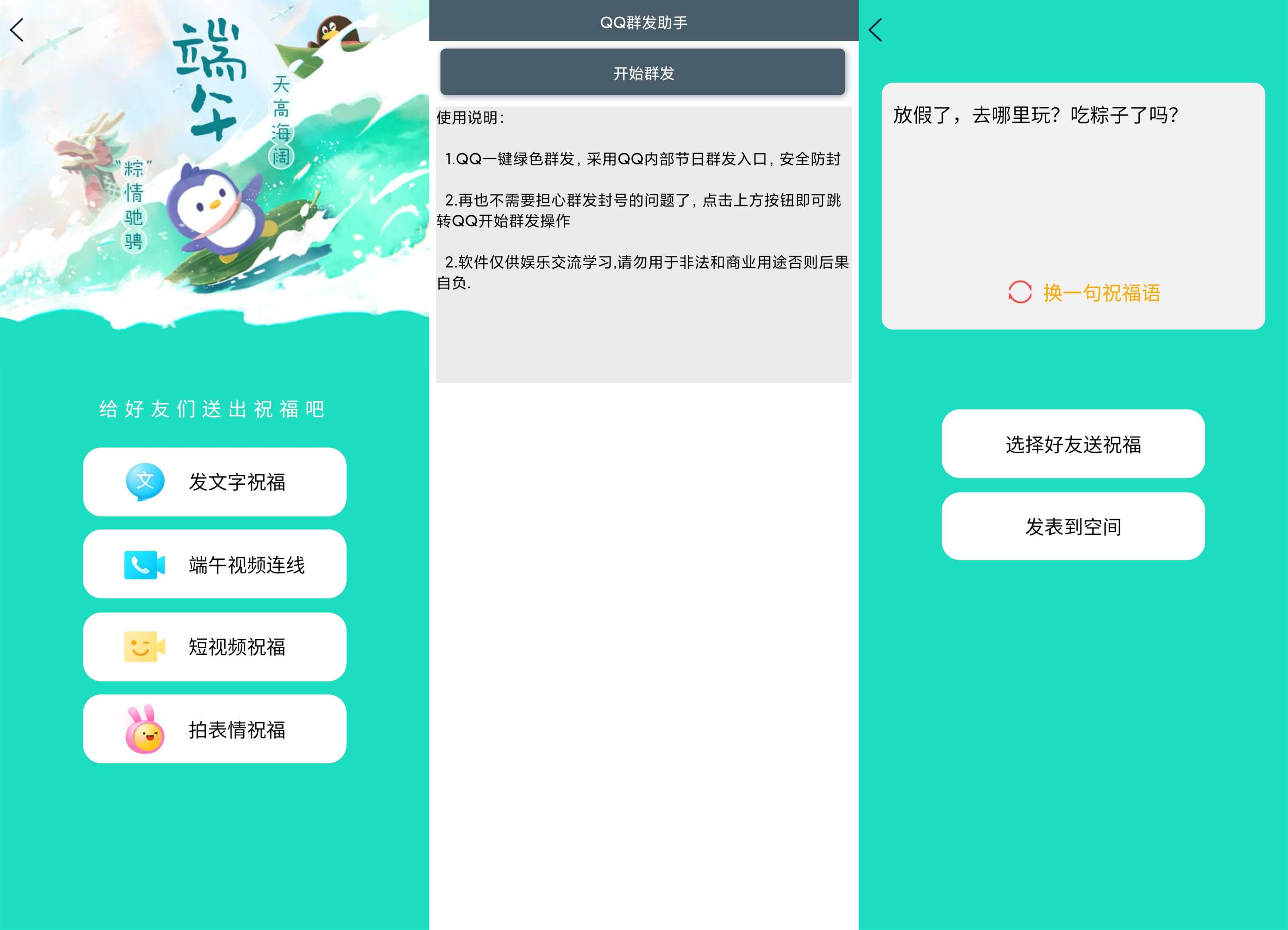 采用QQ内部节日群发接口,安全防封,无需担心群发封号的问题。