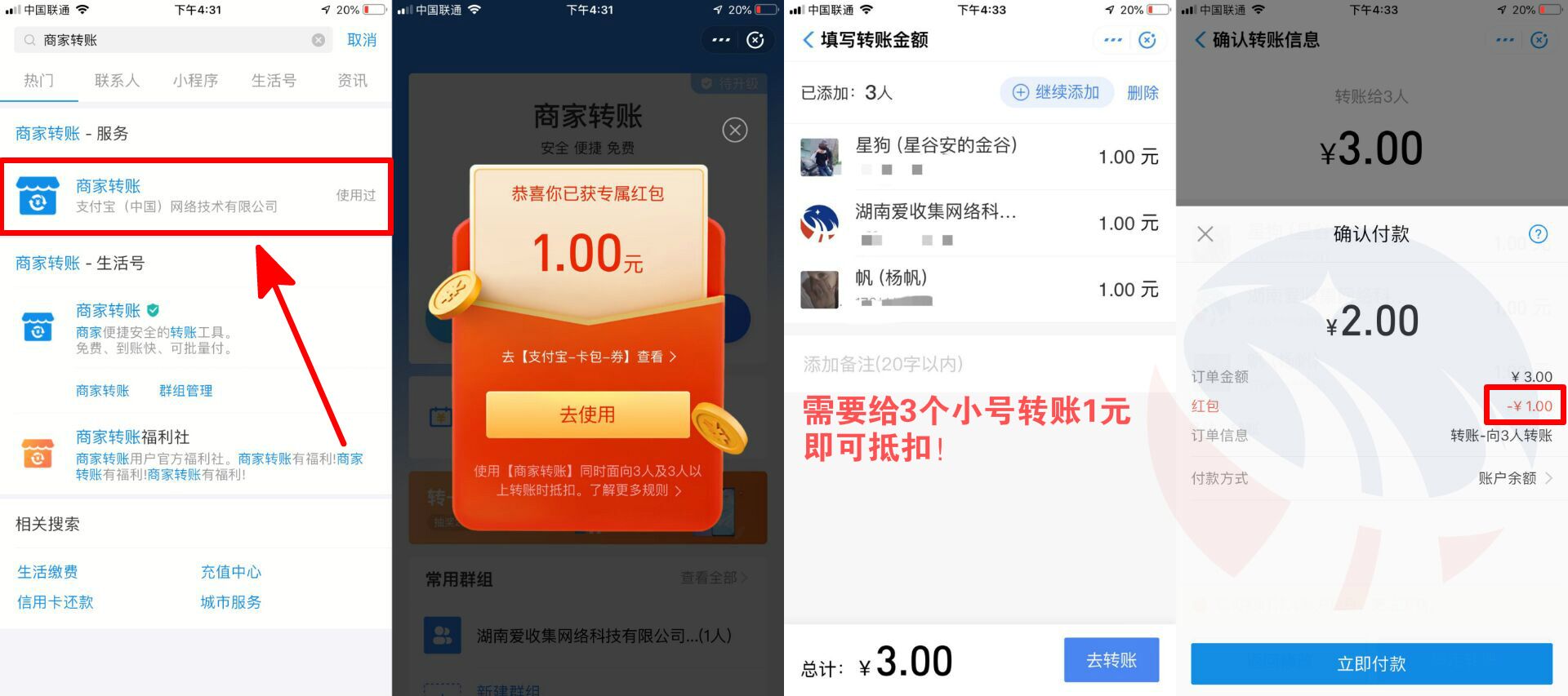 2.领的红包会自动抵扣转账的3元-然后支付就行了