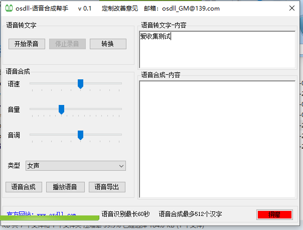 是一款非常不错的文字转语音工具,支持双向转换,识别率非常高, 最高没分钟可转换512个汉字,语音转文字多长录制60秒! 下载地址:https://pan.baidu.com/s/16JaQTKo6iIfEcRGBef6cYA 提取码:t0wm 下载地址蓝奏网盘 |