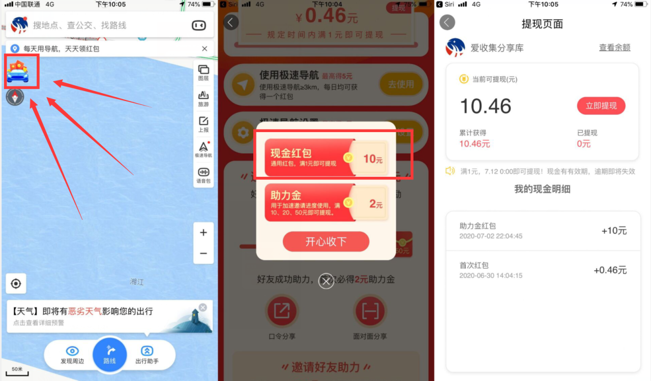下拉还能邀人助力->亲测邀请了7个朋友领到10元红包!