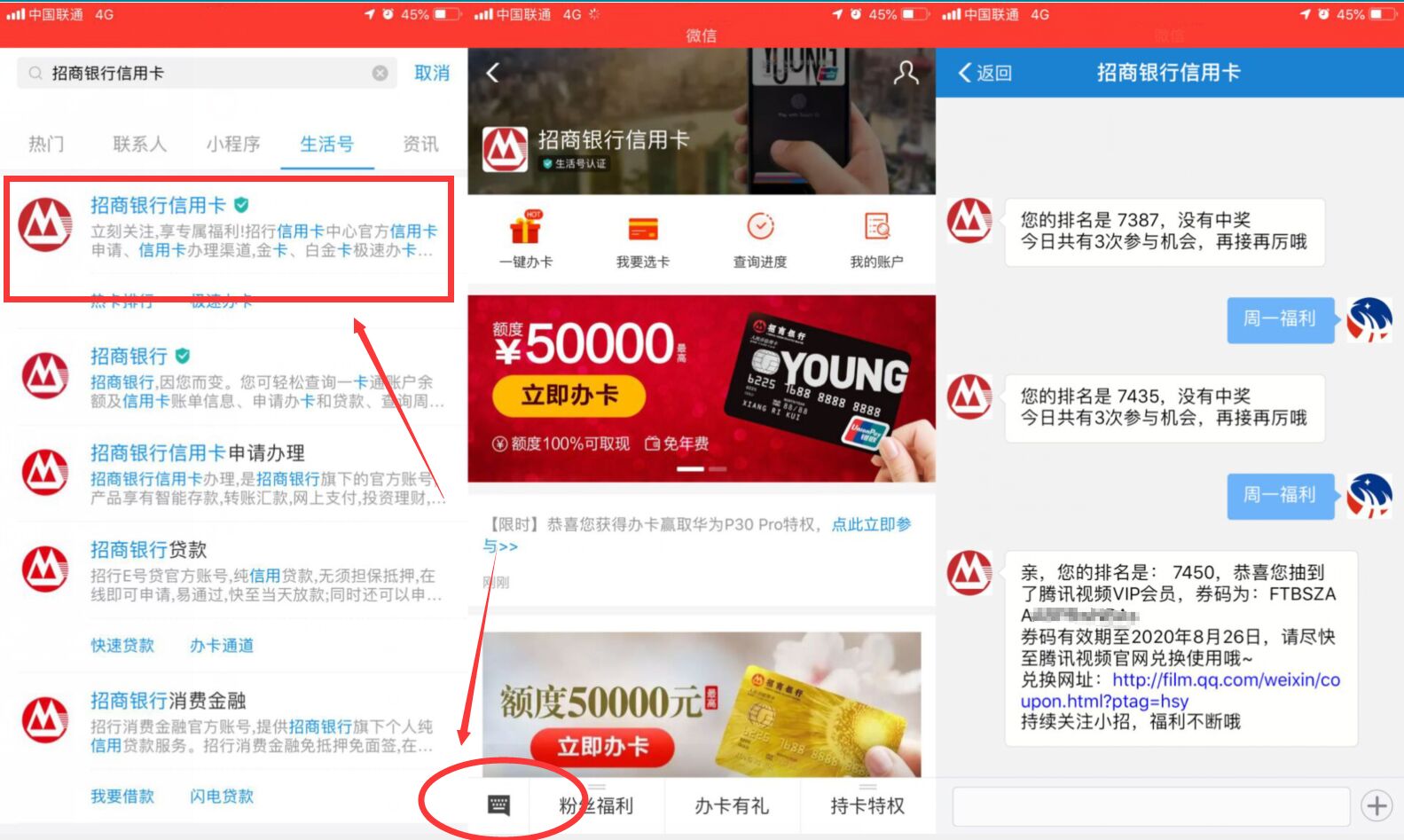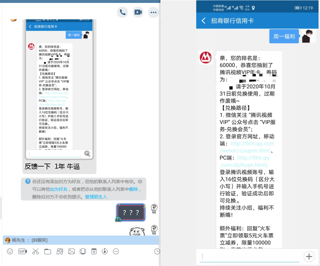 回复“周一福利”共3次机会->亲测腾讯视频月卡!