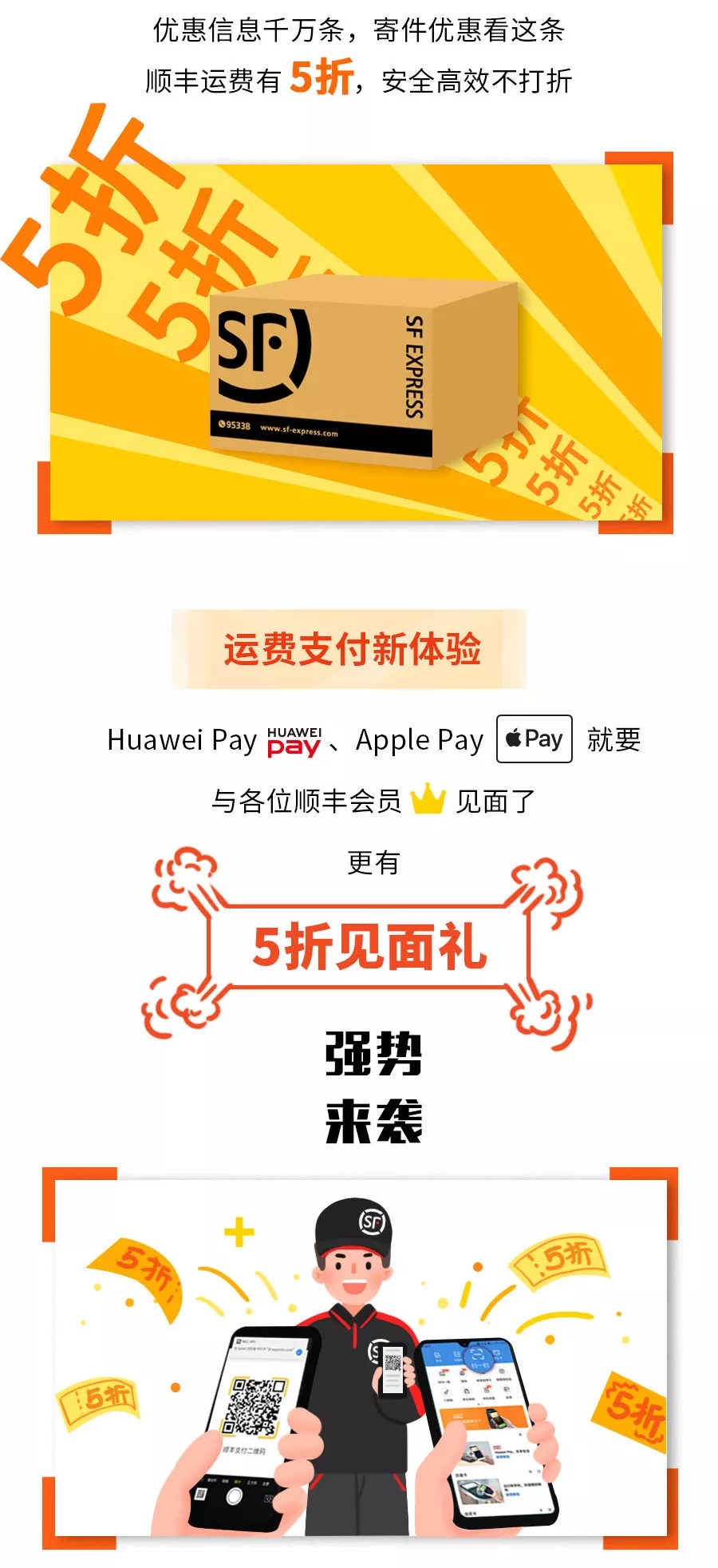 用Huawei Pay 或Apple Pay支付顺丰运费可享受5折优惠(封顶15元) 每位用户每天只能优惠1笔,活动期间最高3笔 活动时间:2019.3.12~5.11 苹果入口:http://grenoo.cn/sfwallet-iphone 原活动:https://mp.weixin.qq.com/s/aSqak7mi8wSgrV-vYy8eEA |