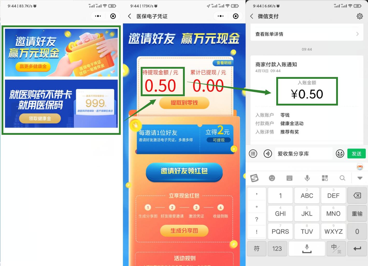 PS:可以先大号绑医保领0.5,然后邀父母的号再领2元