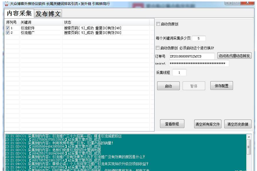 支持外链引蜘蛛 长尾关键词排名等 支持自动采集 自动伪原创内容 自动发布为一体
