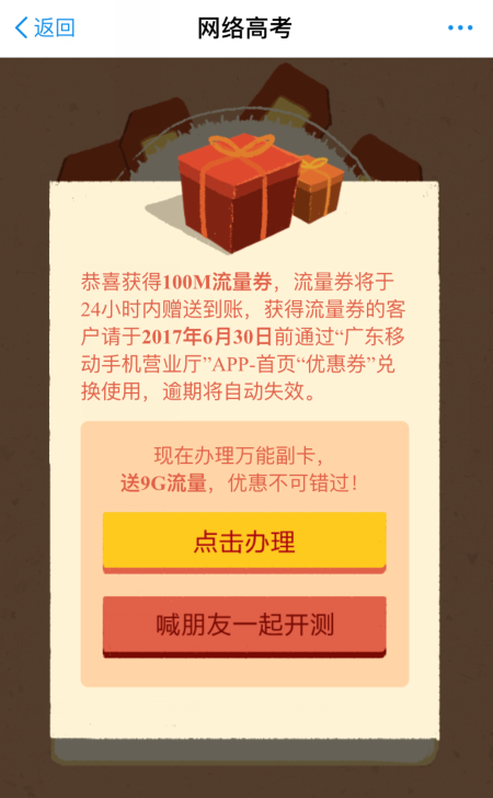 或者历史消息找到上面圈出来的活动入口进去然后答题 → 手机收一条验证码 → 流量券秒到