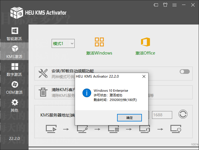 2021年5月25日 17:27:11 亲测激活成功! 是一位叫 知彼而知己 的大神所开发的KMS激活工具,最新版本新增加了OEM激活, 增加对Vista/Win7/Server 2008 (R2)/2012 (R2) OEM的永久激活(支持Legacy/UEFI BIOS) 不在是以前的那个KMS激活了,很多系统都可以使用数字权利永久激活使用, 而且此工具带有静默激活参数可以用来封装使用,在封装系统安装后调用 HEU KMS Activator 计划任务 加上静默激活参数可完美激活, 此版本激活成功率最高,推荐系统封装爱好者使用 |
