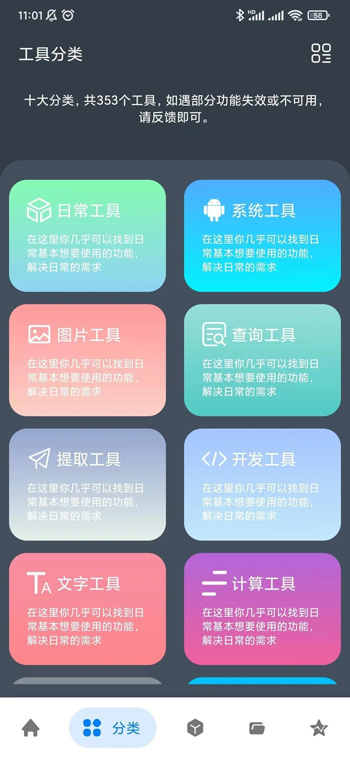 一个汇集了超多功能的手机工具,该软件目前已经有了300多个工具,