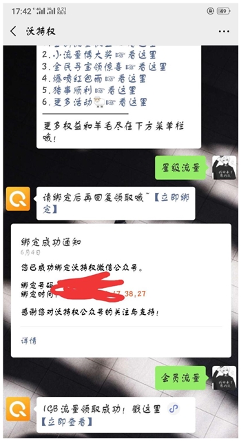 微信扫码关注->发送“星级流量”点推文绑定进去领取兑换即可