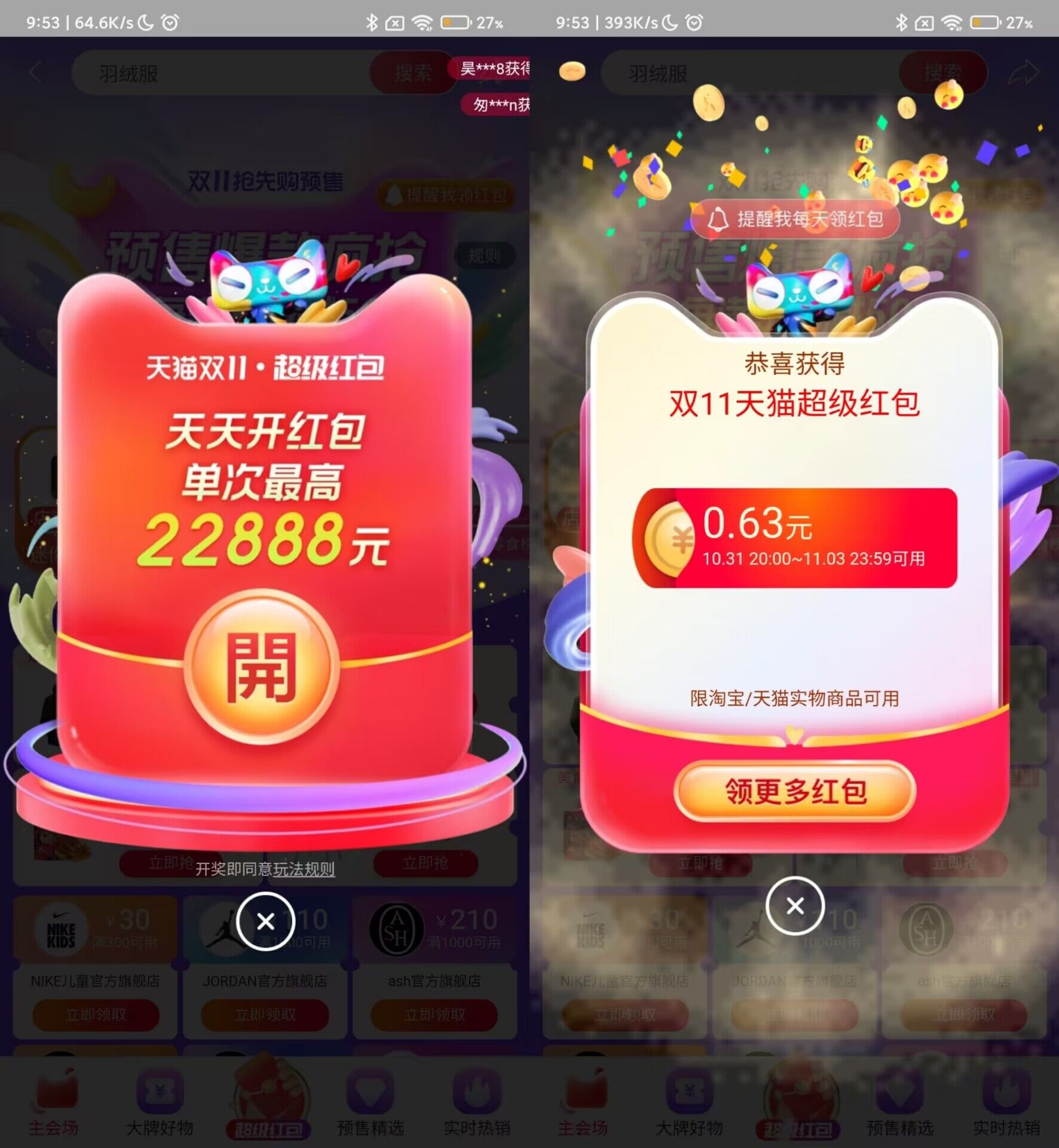 1、天猫双十一抽红包了->活动时间内每天都可以抽->可以无门槛叠加使用 2、超级简单就打开就抽->不管中多少->总别没有好->每天随手抽多!!! 等双十一可以0撸!!!记住了!!!!! 淘口令1¥XbDGdaa8mzl¥/ 1、京东双11抽红包提前开启了->活动时间内每天都可以抽 2、超级简单就打开就抽->不管中多少->总别没有好 每天随手抽多累计点能0撸! |
