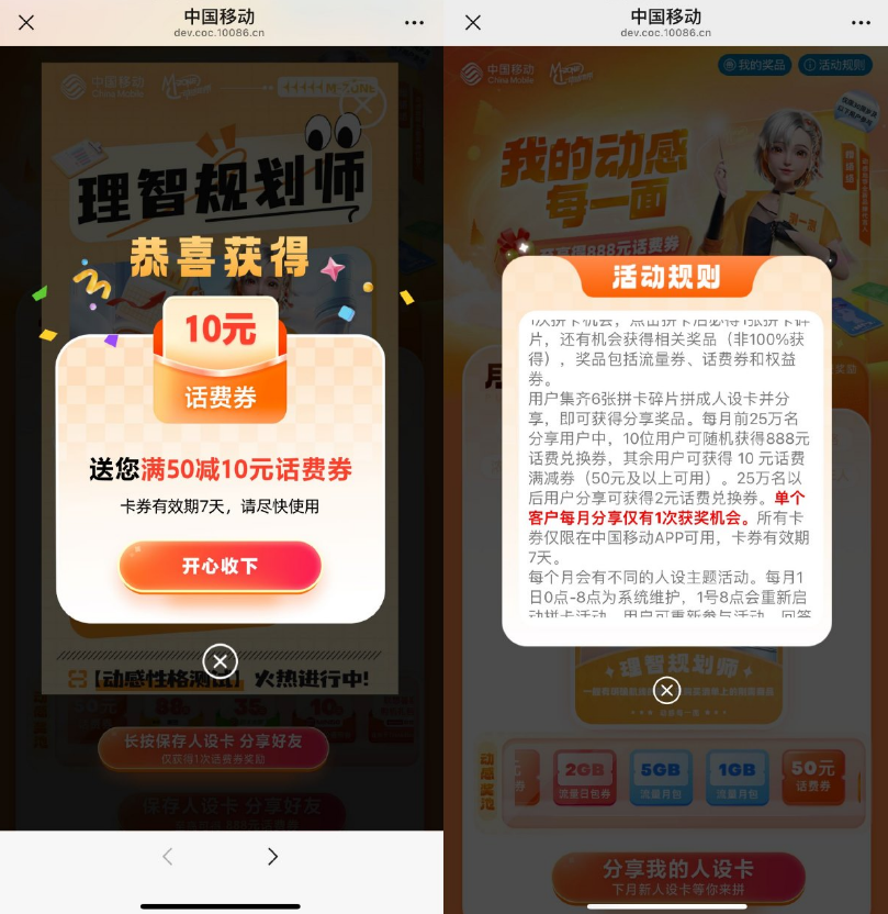 打开活动地址->简单浏览点下得次数集拼图,前25万名必得50减10亓话费券