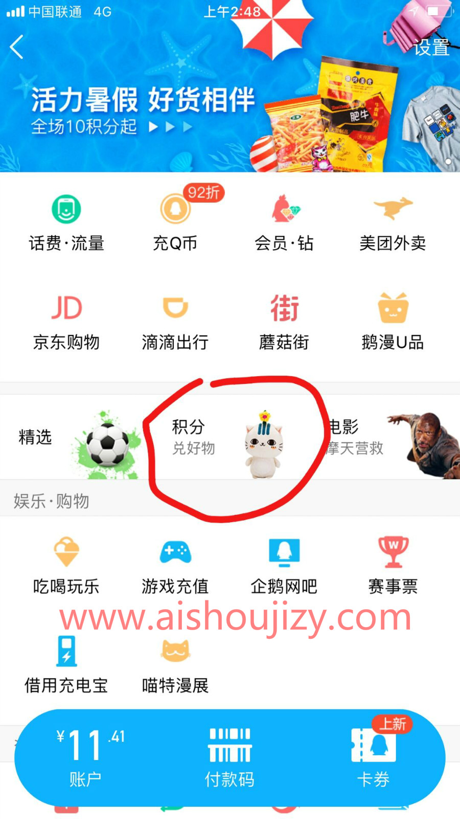 1、手机QQ→QQ钱包→积分→大转盘→10积分抽奖1次→必中其中一个