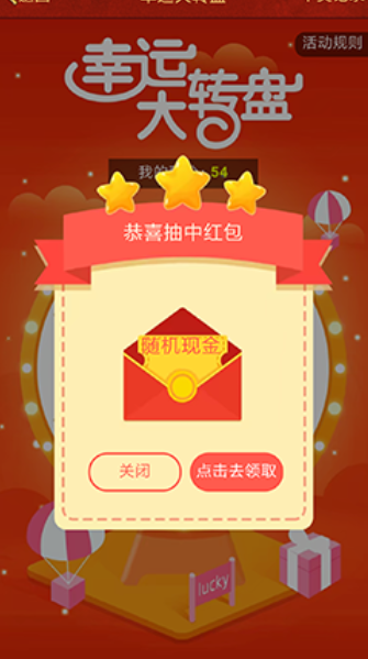 奖品有20积分、1元红包、6元红包、8元红包、随机红包,百分百中奖